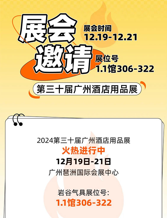12月18-20日第三十一届广州酒店用品展览会 | 岩谷气具诚邀您临位品鉴