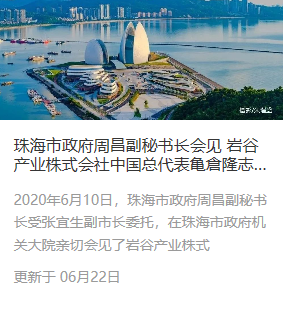 珠海市政府周昌副秘书长会见 岩谷产业株式会社中国总代表亀倉隆志一行